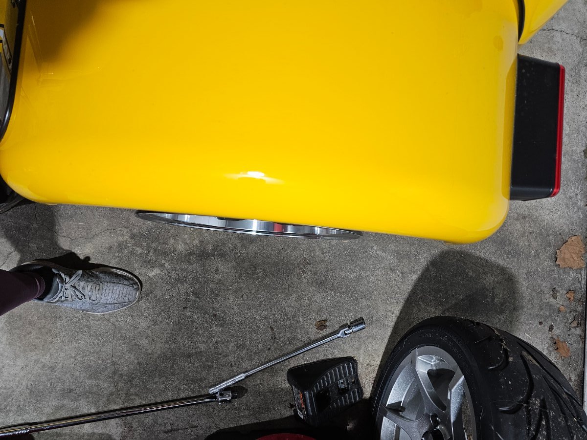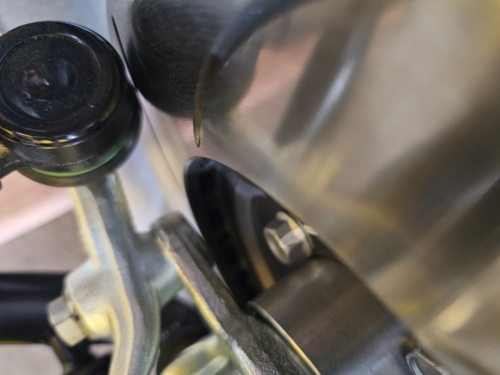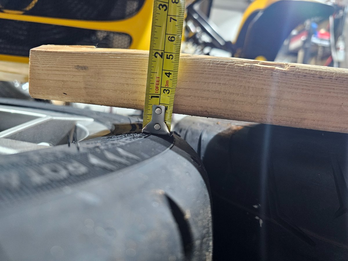 8. My 10 mm wider tires are 15 mm wider 😂 Contacts cycle stay lightly. Otherwise fits great, easy to mount. Should I: 1) shim the cycle stay towards center of car? 2) shim cycle stays up? 3) shim both directions? 4) bend the cycle stay? I'm not sure what the cycle stay holes look like since these were installed already when I received the car. Rears fit as anticipated, slightly more than a 1 finger gap between trailing arm and tire. No the stands are not under the exhaust although it really appears as such! Vs Old