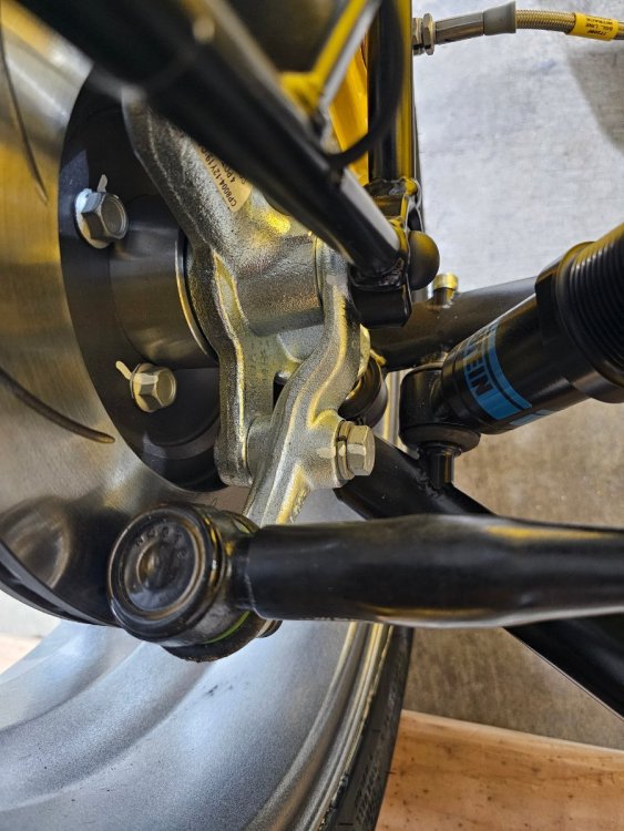 5. I think that is the way to go, adding a washer/spacer on the knuckle connections doesn't seem like the greatest idea. Elongating the upper mount hole might work but then isn't centered. 15" I'll keep an eye on that for sure. I thought about this and decided bending would be faster, cheaper, and closer to the OEM scrub radius.