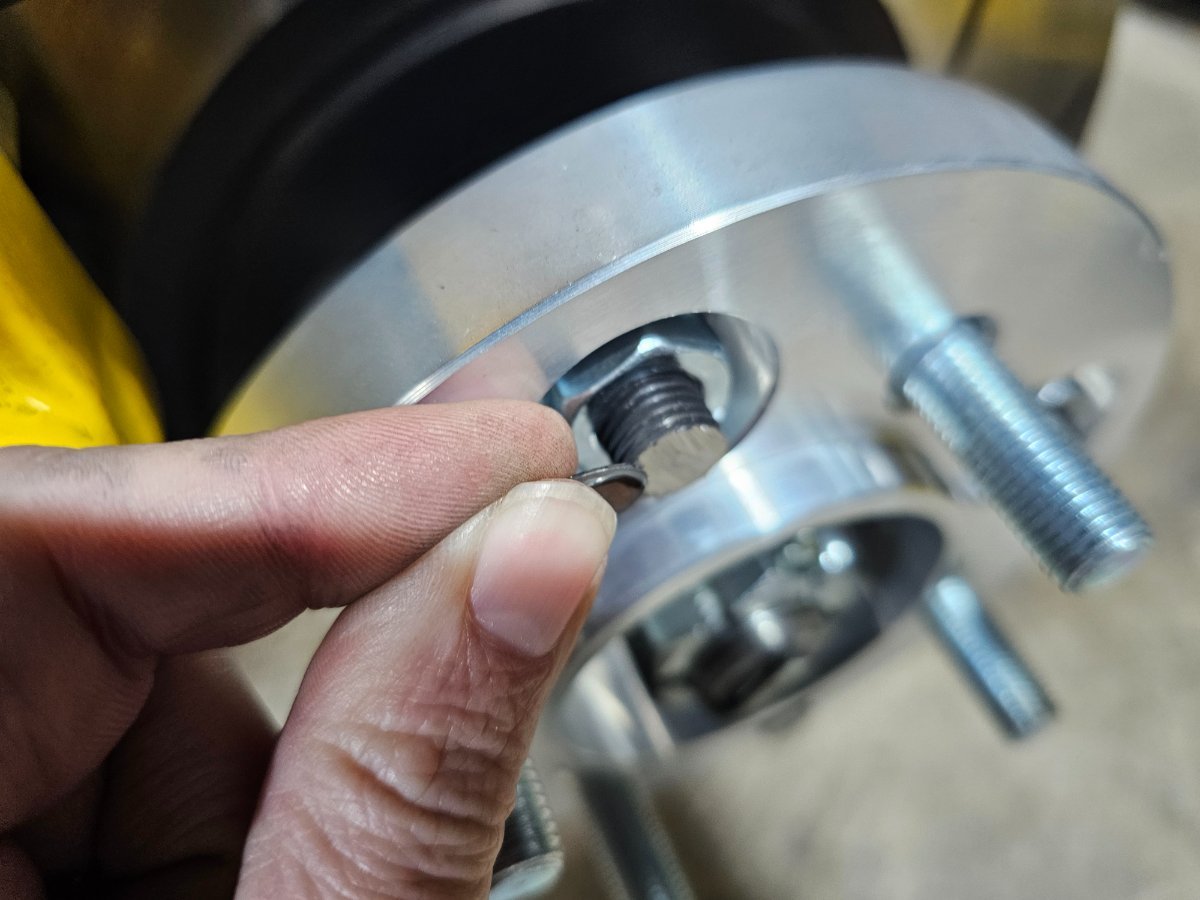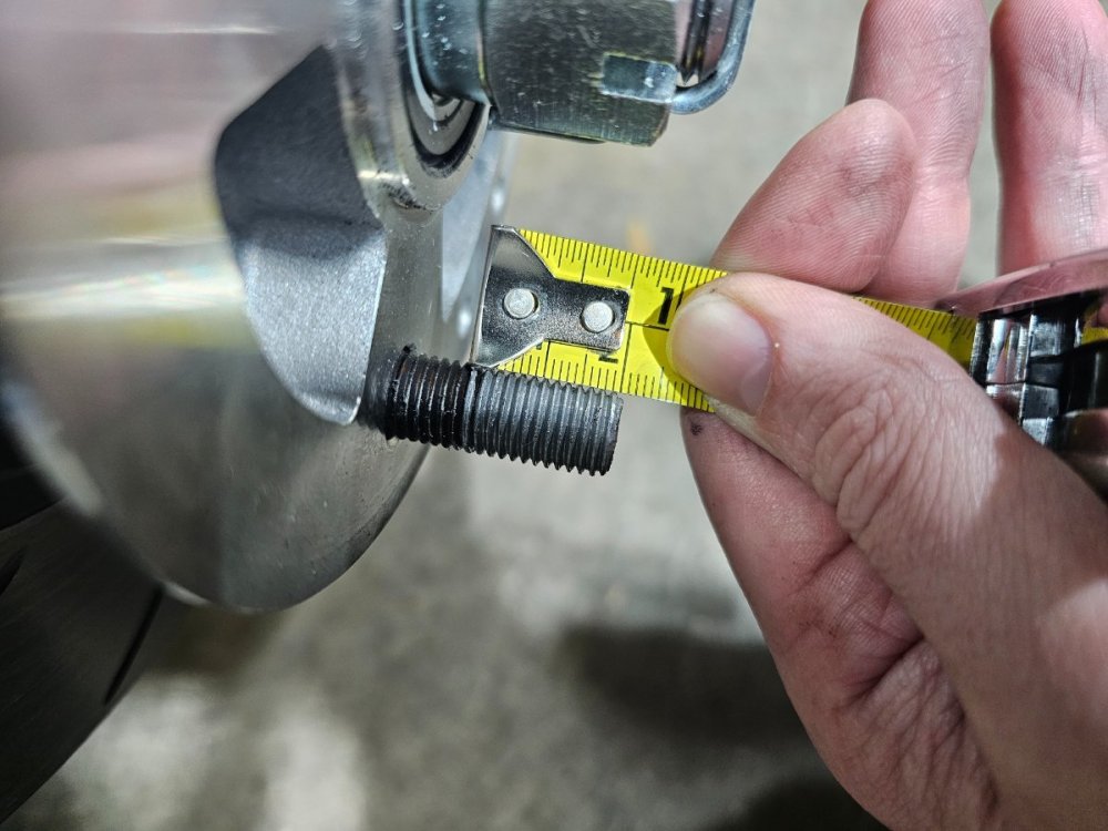 17. Straightened out my headlights, they were set to UK angle as seen here: Suspension felt good around town, pretty darn smooth at low speeds over terrible roads. On the highway, it's very busy and a bit bouncy. Realized I never actually checked tire pressures and they were at 25-30, brought down to 22 to try that. But that got me thinking that the car felt under-damped on the highway very similar to how my Miata with bilsteins did. Reading online and it seems a common sentiment. The other common sentiment is to buy suspension kits from meteor motorsports. Having been burned with tariffs so much lately I think I'll find a US solution. This leaves Penske, MCS, FOX. Will post some suspension measurements. The wheels: Each front stud has 20 mm of thread engagement for the stock front wheels and the lug nuts took about 12.5 turns to remove. The studs appear to be about 10 mm diameter, so with the 1.5x rule I need 15 mm thread engagement and have 5 mm extra. My front spacer adapters are 20 mm thick and the front studs are 28 mm long. The relief in the back side of the front wheels is much smaller than the rear wheels and is 6 mm. This means 28 - 20 - 6 = 2 mm extra. Since I have 5 extra to play with, I can cut 3 and have 17 mm thread engagement when using the stock front wheels. For the rear, the relief in the back of the wheel is 20 mm, the studs are 32 mm long, and the spacer is 15 mm. 32 - 15 - 20 = -3 mm of gap between the end of the stud and the wheel relief, so it should be ok as-is. Do I have any flawed reasoning to think 17 mm front stud-lug nut engagement is acceptable? Front studs: Engagement via antiseize:
