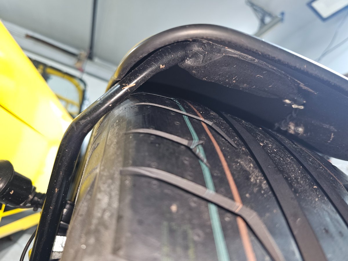 6. Maybe I finally get to buy a welder?? Or does someone sell wing stays for taller tires? I think it's the 50 profile that's killing me, 205/50 circumference is larger than 195/50 oops.