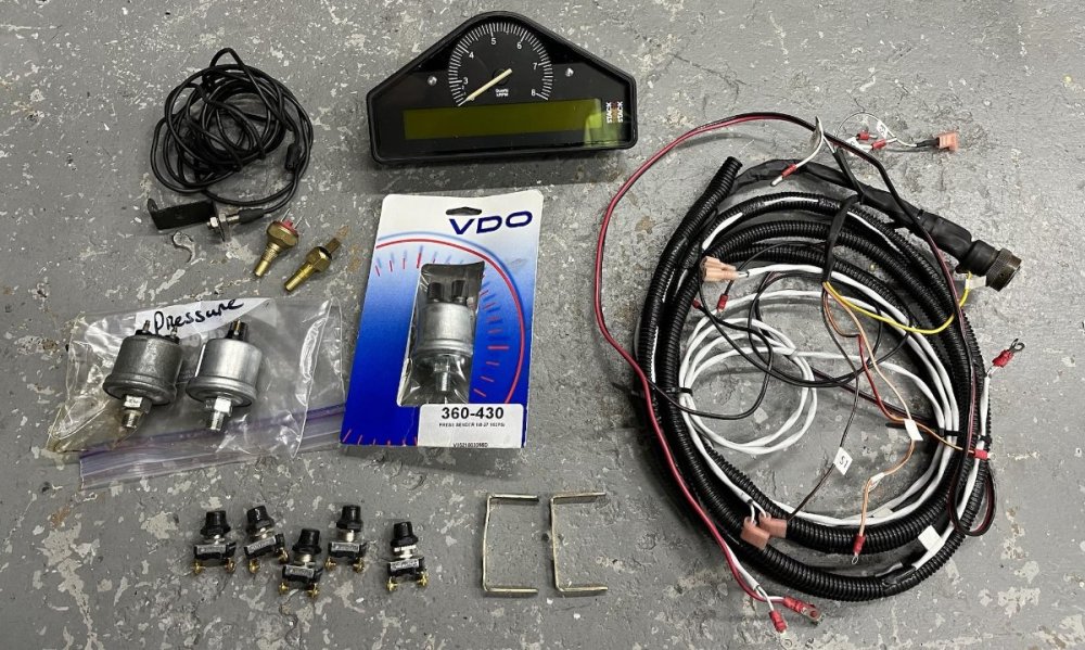 12. I have a used Stack ST8100 series race dash available. It was originally fitted to a 2002 Caterham 7 project I bought and in the end I decided not to use it as I wanted something with CAN connectivity with my ECU. I'm not very familiar with this unit, so please check out the Stack site here and the manual here. It comes with a wiring harness, three 10 BAR pressure sensors (one brand new, two used), two temp sensors (used), five switches (one is a spare), the U-shaped mounting brackets and the optional wheel speed sensor. I do not see a connector on the harness for the speed sensor, so I believe you would need to add wires for this (the manual has a wiring diagram). It's in good shape, but obviously has some scratches on the front, being 21 years old. Also, some of the black "masking" on the front panel (not sure what to call it) has deteriorated a little. I believe Stack still service these, so it would be possible to have the front panel replaced and resealed if you really wanted a cosmetic refresh. I did fire it up on the bench to test the back-lighting, text display and that the needle calibrates to zero. I also connected the sensors and could see the temps change and the low oil pressure warning. I'm happy to send a video if you'd like to see it start up. But I am unable to give it a more thorough test than this as my engine is not running yet. Asking $750. I'm in San Diego, if you want to see it in person.