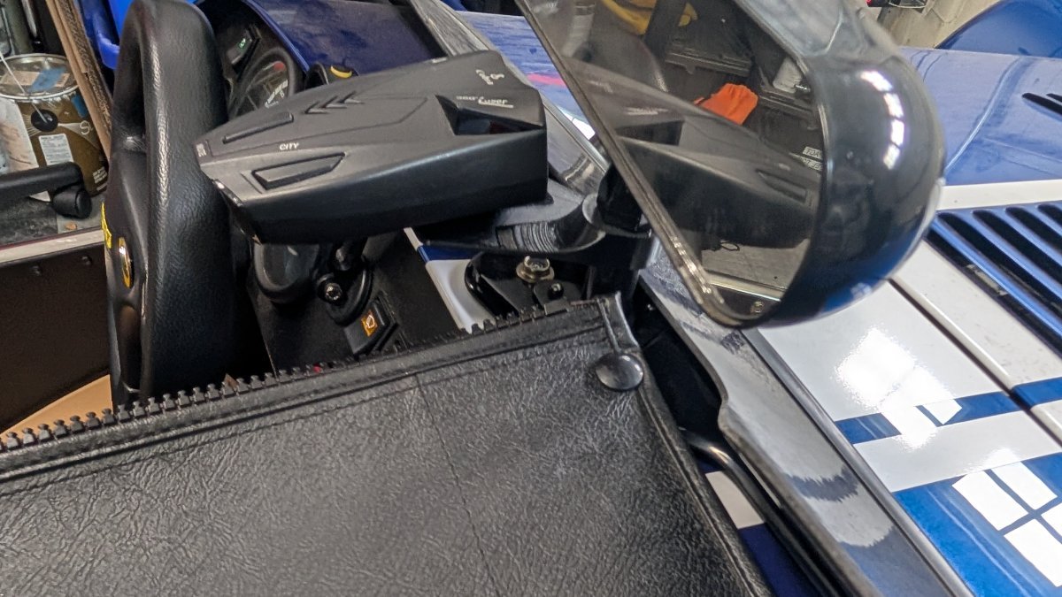 Also made a little tray for a radar detector, mounted on the aeroscreen mirror post.  The detector is secured with Velcro.  The mount works well, but I can't really hear or see the signals so it might not be helpful.